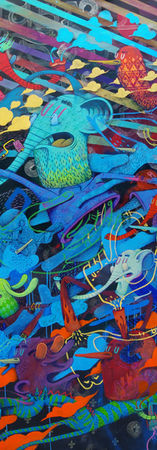 Tagueur virtuose et maître en calligraphie, il enrichit ses fresques de personnages picaresques, de paysages foisonnants et d’abstractions lyriques.